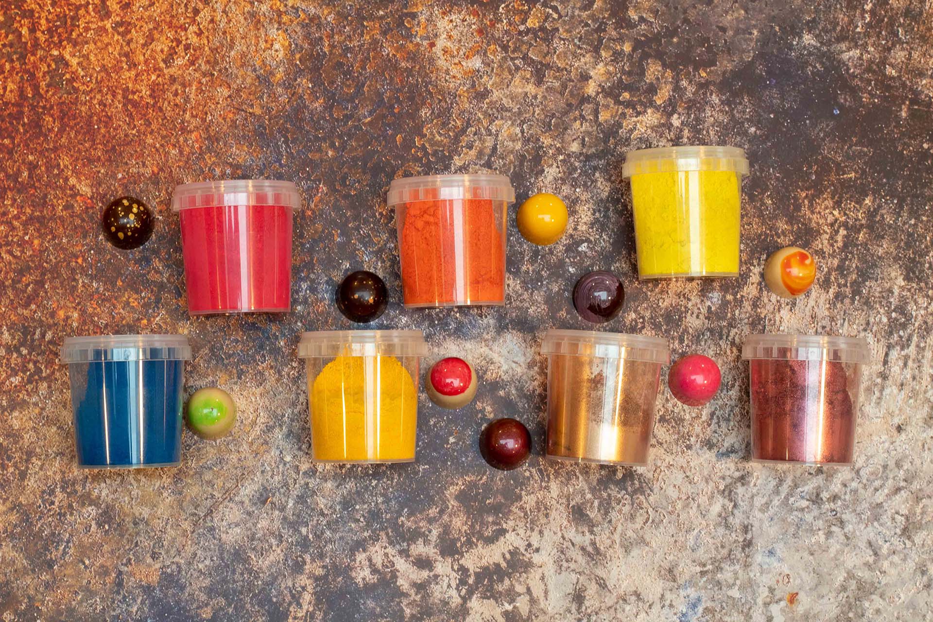 Als je hiermee je bonbons wilt kleuren dan moet je de cacaoboter wel eerst even tempereren.