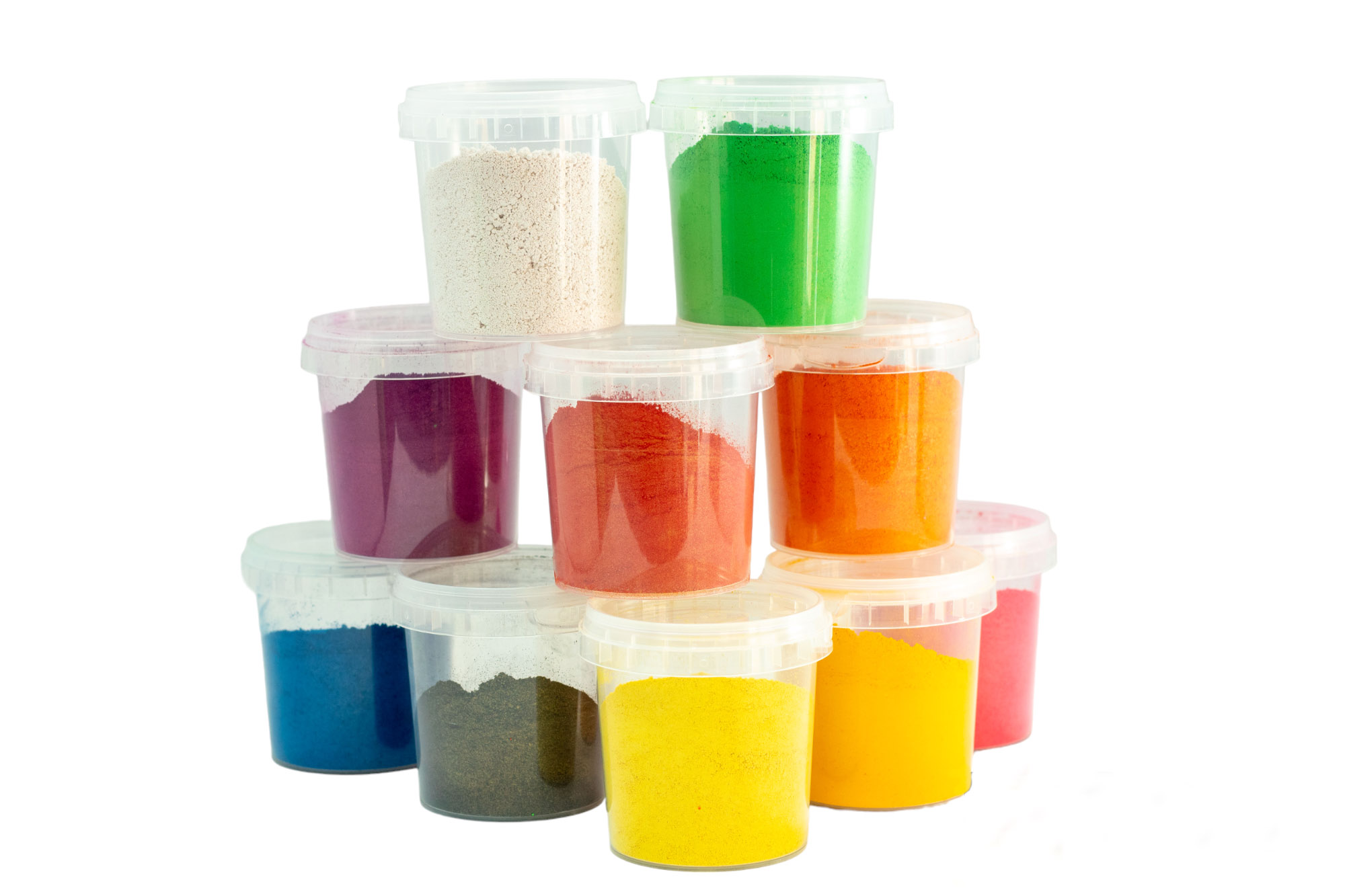 PW kleurpoeders heeft een assortiment van 10 verschillende kleurpoeders. Licht geel, geel, groen, roze, oranje, rood, paars blauw, zwart en wit.