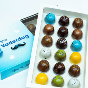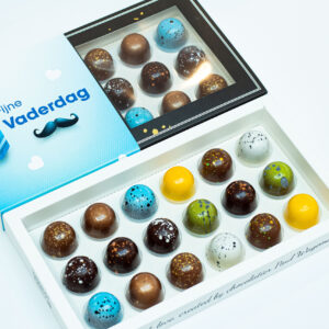 Dit doosje met luxe Vaderdag bonbons is gevuld met 18 van onze heerlijke bonbons;