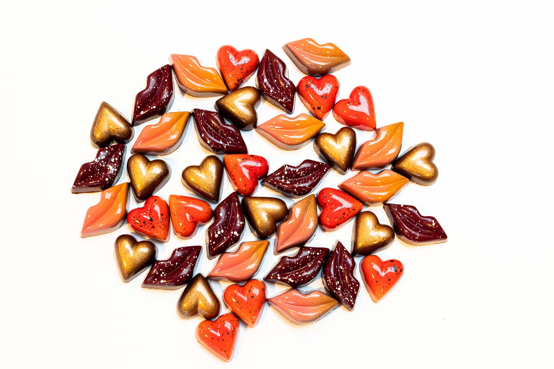 Ontdek de magie van Chocolade harten, gevuld met romige witte chocolade aardbeien ganache of een heerlijke hazelnoot praliné. Verlies jezelf in de verleidelijke smaken van handgemaakte chocolade rozen, prachtig verpakt en gevuld met heerlijke hazelnoot praliné. Of ontdek de romantiek in een van onze prachtige Valentijn bonbon doosjes.
